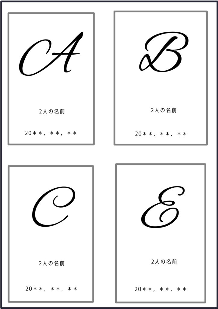 こんな感じにA4の中に作りたいサイズの四角を作ってテーブル番号を入れ下にはお二人の名前と式の日にちを記入します